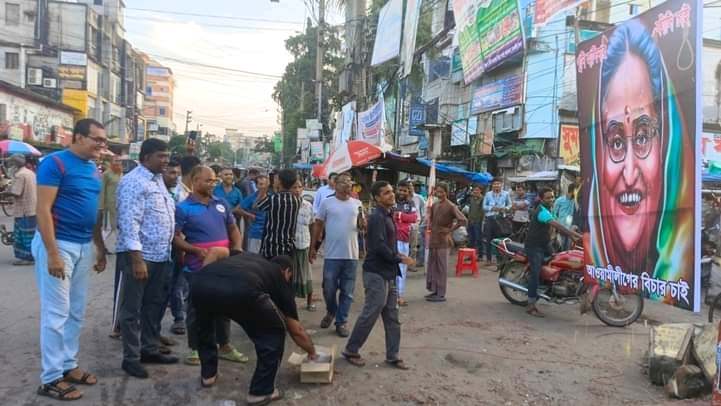 যুক্তরাষ্ট্রে আখতারের ওপর হামলার প্রতিবাদে সাতক্ষীরায় সাবেক প্রধানমন্ত্রী শেখ হাসিনার ছবিতে ডিম নিক্ষেপ।